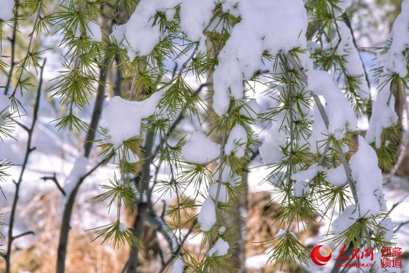 雪壓松枝。人民網 李海霞攝