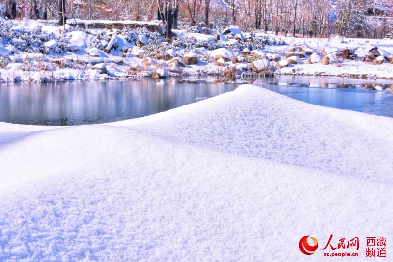 雪落在拉薩南山公園。人民網 李海霞攝