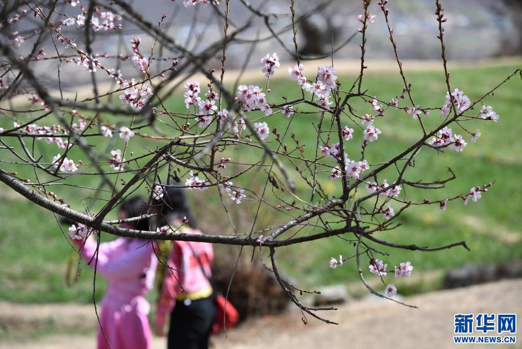 3月28日,游客們來到西藏自治區(qū)林芝市索松村欣賞桃花。新華社記者 孫瑞博 攝