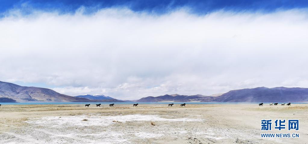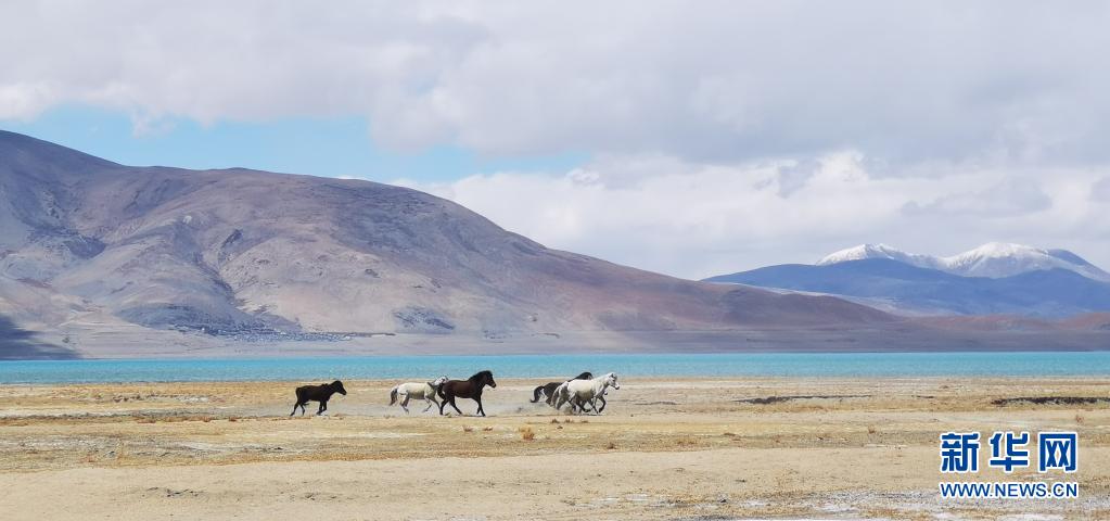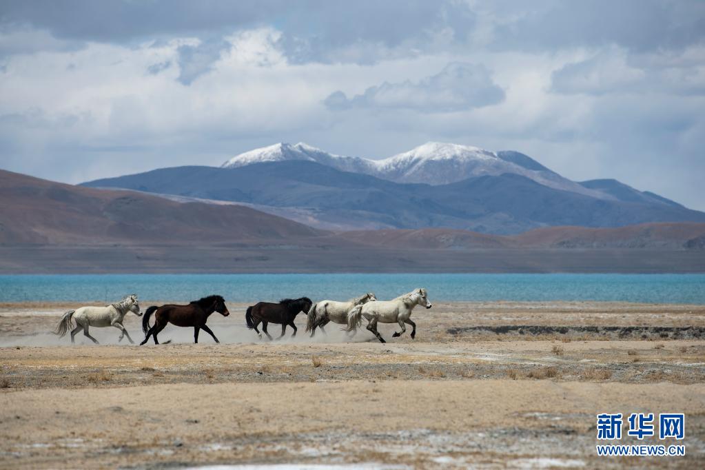野馬在佩枯錯(cuò)旁奔馳(5月14日攝)。新華社記者 孫瑞博 攝