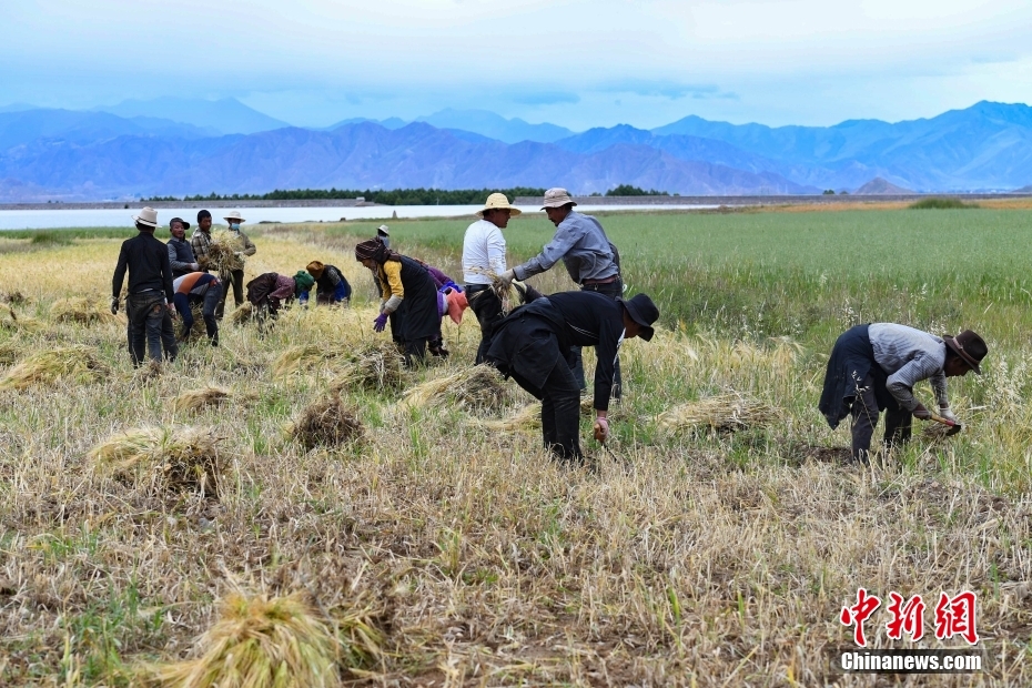 9月8日,西藏自治區(qū)拉薩市林周縣春堆鄉(xiāng)的農民在搶收青稞。金秋時節(jié),拉薩河谷一帶青稞成熟,農民在青稞田忙碌,一片繁忙景象。中新社記者 貢嘎來松 攝