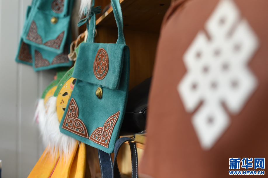 曲水俊巴民族手工皮具制作專業(yè)合作社設(shè)計的伸縮包。(2月24日攝)新華網(wǎng) 旦增努布 攝