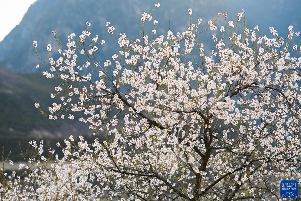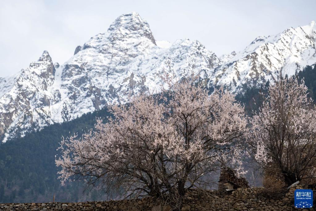 這是在那曲市嘉黎縣尼屋鄉(xiāng)拍攝的桃花(3月30日攝)。新華社記者 周荻瀟 攝