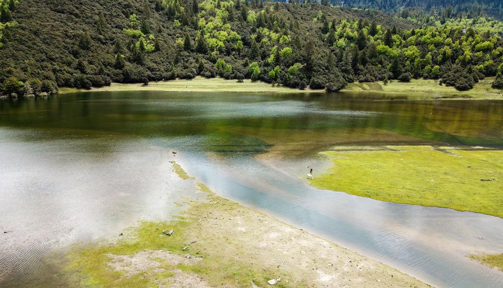 這是位于林芝市巴宜區(qū)魯朗鎮(zhèn)的一片濕地(5月31日攝,無(wú)人機(jī)照片) 。新華社記者 姜帆 攝