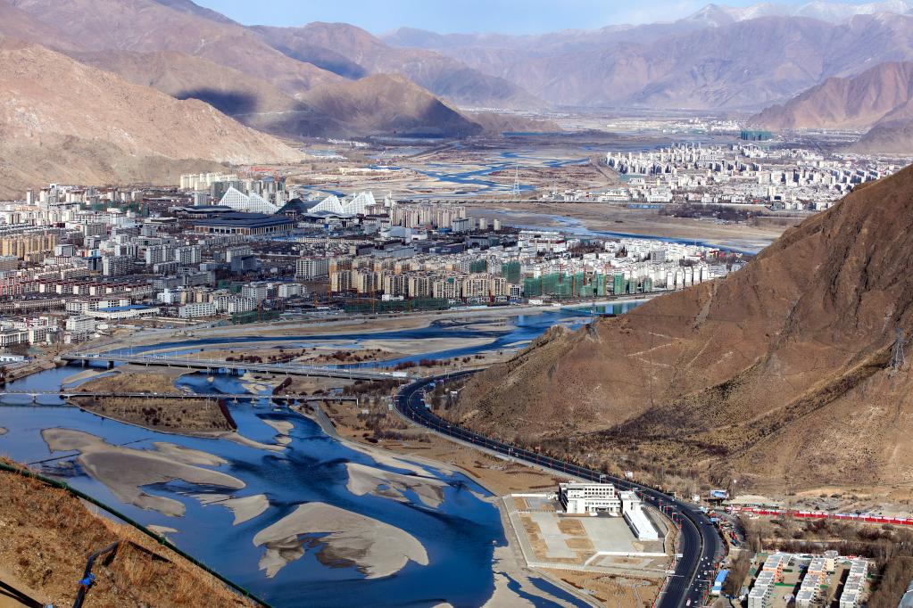 拉薩河從城區(qū)蜿蜒而過(guò)(3月2日攝)。新華社記者 姜帆 攝
