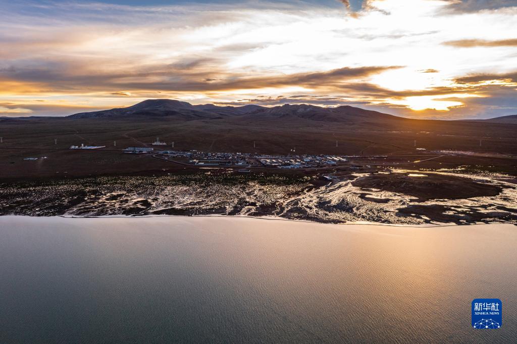 日落時分的雙湖縣多瑪鄉(xiāng)(7月14日攝,無人機(jī)照片)。新華社記者 孫非 攝