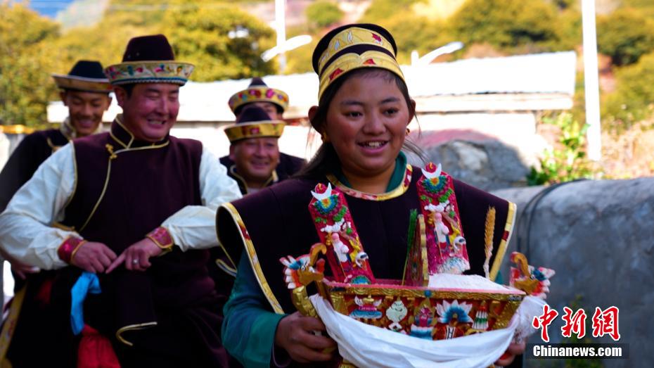 11月24日恰逢藏歷十月初一,西藏林芝迎來(lái)2023年工布新年,這是西藏最早的新年。工布新年以其悠久的歷史、鮮明的特色、豐富的內(nèi)涵,于2006年被列入第一批西藏自治區(qū)非物質(zhì)文化遺產(chǎn)保護(hù)名錄。圖為村民身著節(jié)日盛裝手捧“切瑪”拜年。 土旦曲扎 攝
