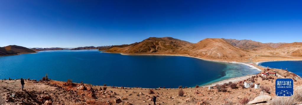 在日托寺俯瞰羊卓雍錯(拼接照片,12月11日攝)。新華社記者 姜帆 攝
