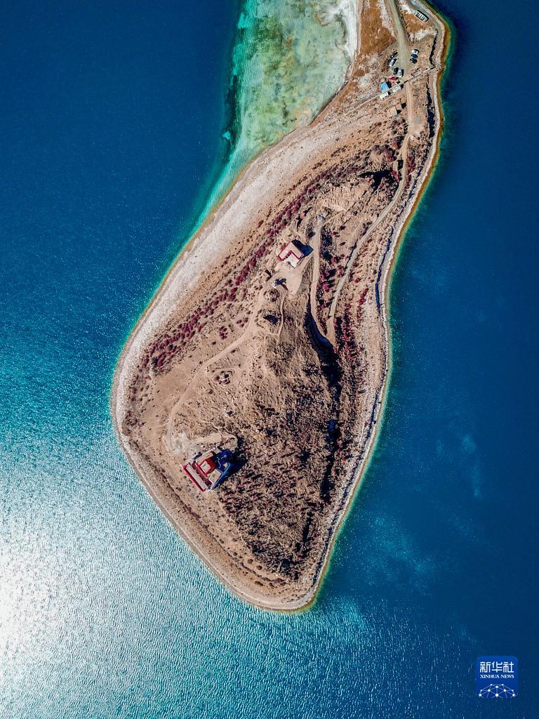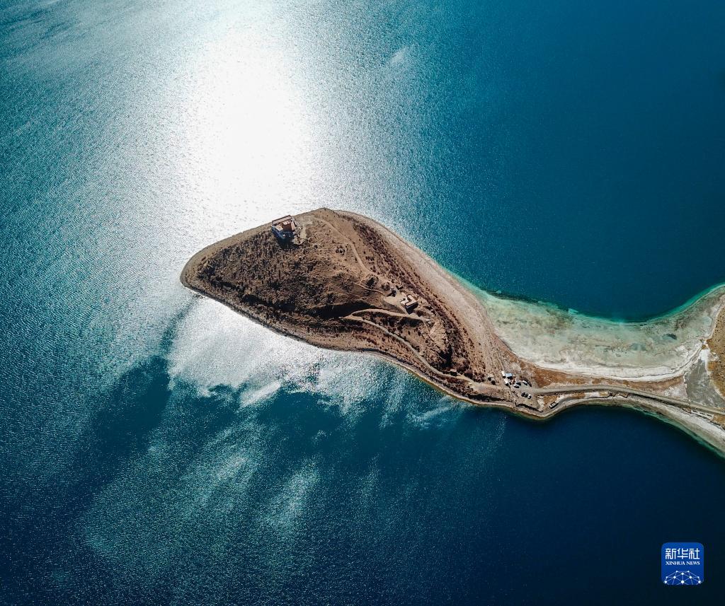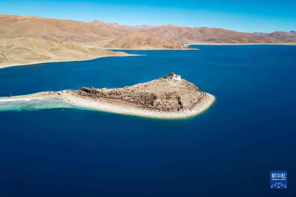 坐落于羊湖北岸一座半島上的日托寺(無人機(jī)照片,12月11日攝)。新華社記者 姜帆