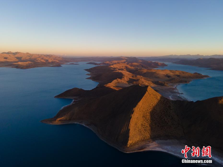 近日,西藏自治區(qū)山南市羊卓雍錯(cuò)(簡(jiǎn)稱羊湖),冬日由于沒有云層遮擋,湖水更顯深藍(lán)、孔雀藍(lán)。航拍視角下,湖水像巨大的寶石鑲嵌于高原大地,風(fēng)光壯麗。羊卓雍錯(cuò)藏語(yǔ)意為“碧玉湖”,湖面海拔4441米,與納木錯(cuò)、瑪旁雍錯(cuò)并稱西藏三大“圣湖”。圖為日落后的羊卓雍錯(cuò)風(fēng)光。 江飛波 攝