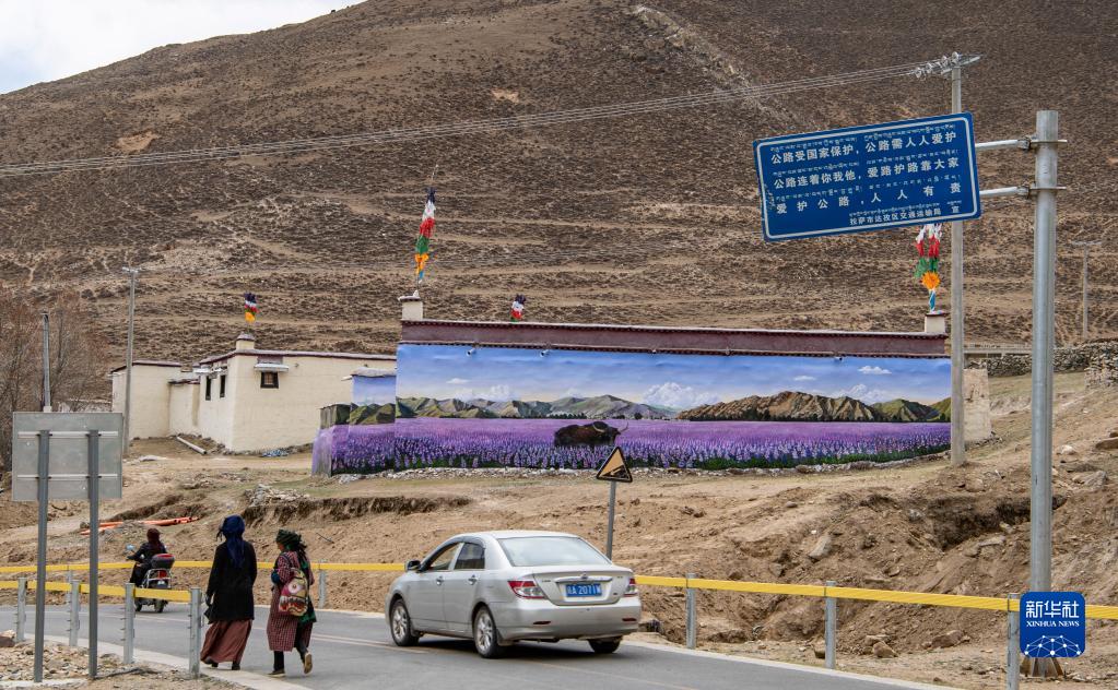 這是4月10日在拉薩市達孜區(qū)章多鄉(xiāng)恰村拍攝的墻畫。新華社記者 晉美多吉 攝