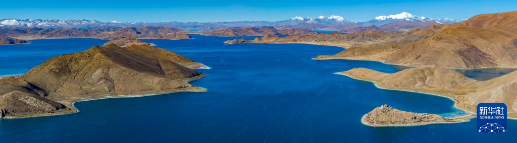 這是10月25日拍攝的羊卓雍錯和日托寺。新華社記者 姜帆 攝