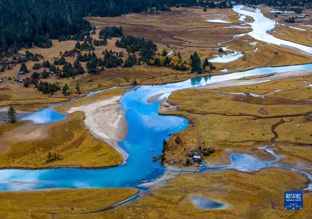 這是在林芝工布江達(dá)縣拍攝的景觀(無人機(jī)照片,10月28日攝)。新華社記者 姜帆 攝