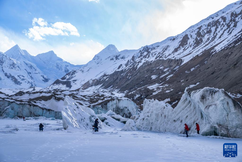 游客在祥格拉冰川腳下游玩(3月28日攝)。新華社記者 陳尚才 攝