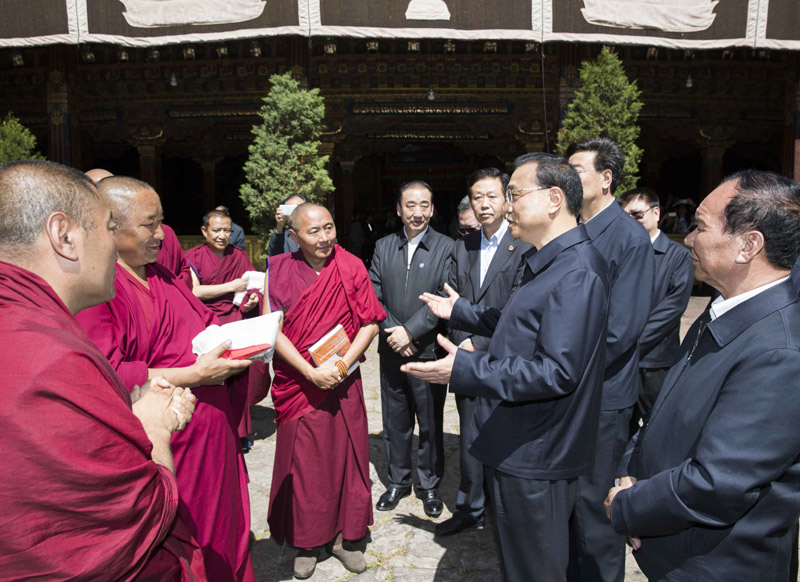 7月26日下午,李克強(qiáng)總理來(lái)到拉薩市大昭寺看望慰問(wèn)西藏宗教界人士。始建于653年的大昭寺是西藏現(xiàn)存最輝煌的吐蕃時(shí)期寺廟建筑。李克強(qiáng)向西藏廣大宗教界人士致以誠(chéng)摯的問(wèn)候和衷心的祝福。他說(shuō),大昭寺是藏傳佛教的圣殿,同時(shí)見(jiàn)證了漢藏和親、民族團(tuán)結(jié)的光輝歷史。希望西藏廣大宗教界愛(ài)國(guó)人士要以歷輩高僧大德為榜樣,為維護(hù)祖國(guó)統(tǒng)一、民族團(tuán)結(jié)、社會(huì)和諧作出有益貢獻(xiàn),促進(jìn)宗教和睦、佛事和順、寺廟和諧。祝愿大家精修得道、身體健康、扎西德勒!