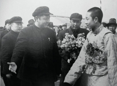 1951年4月中旬,習(xí)仲勛與十世班禪第一次會面。那時,十世班禪率領(lǐng)班禪堪布會議廳官員赴京途經(jīng)西安,習(xí)仲勛作為西北局和西北軍政委員會主要負(fù)責(zé)人,到機(jī)場迎接。班禪走下飛機(jī)時,一個眉清目秀、和善聰慧、舉止文雅、彬彬有禮的英俊藏族少年活佛形象,出現(xiàn)在習(xí)仲勛的眼前。在飛機(jī)舷梯下,十世班禪緊緊握住習(xí)仲勛的手,心情激動地說:“我們是專程去北京向毛主席致敬的!我要把藏族人民對中央人民政府和毛主席的良好祝愿親口轉(zhuǎn)達(dá)給毛主席?!痹诋?dāng)晚歡迎會上,十世班禪表示堅決擁護(hù)中央人民政府,決心與西藏各界愛國人士一道為西藏的解放和藏族人民的團(tuán)結(jié)努力奮斗?!坝兄静辉谀旮摺保腊喽U的愛國熱情和坦誠豪爽的性格給習(xí)仲勛留下了深刻的印象。當(dāng)天,習(xí)仲勛把他接到西北局大院自己家中,十世班禪與習(xí)仲勛的大兒子習(xí)富平同齡,兩人很快就熟稔起來。