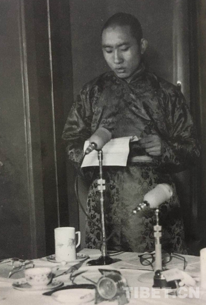 圖為1955年3月9日 十世班禪大師在國務院全體會議第七次會議上發(fā)言。翻拍自《班禪額爾德尼評傳》