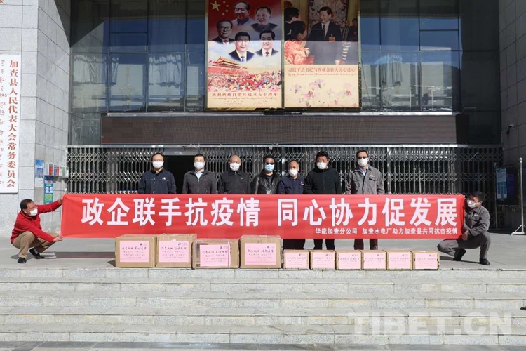 3月16日,西藏自治區(qū)山南市加查縣在政務(wù)中心前舉行“政企聯(lián)手抗疫情 同心協(xié)力促發(fā)展”的醫(yī)療物資捐贈(zèng)儀式。