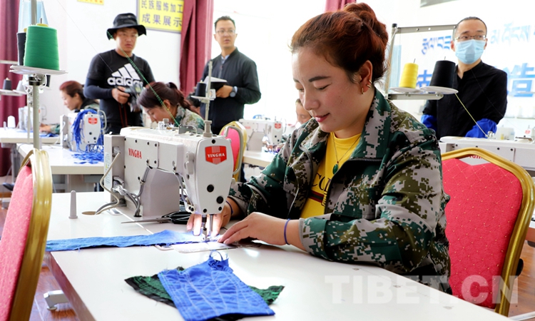 圖為卡若區(qū)就業(yè)創(chuàng)業(yè)培訓(xùn)中心學(xué)員正在學(xué)習(xí)服裝加工 攝影:賈華加