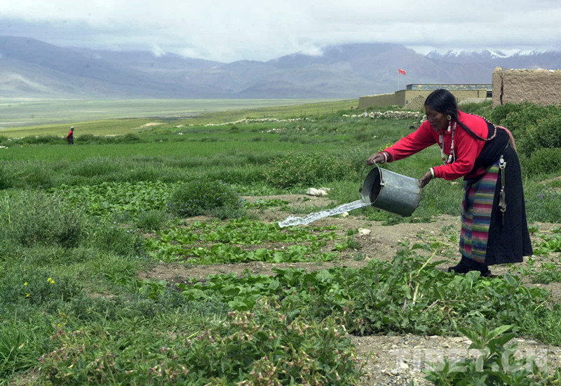 這是文部鄉(xiāng)南村一位藏族婦女在為農(nóng)田澆水(唐召明2001年攝)