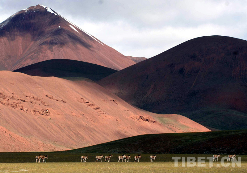 這是棲息在羌塘國家級(jí)自然保護(hù)區(qū)的國家一級(jí)保護(hù)動(dòng)物藏野驢,在悠閑地排隊(duì)行走(唐召明2014年攝)