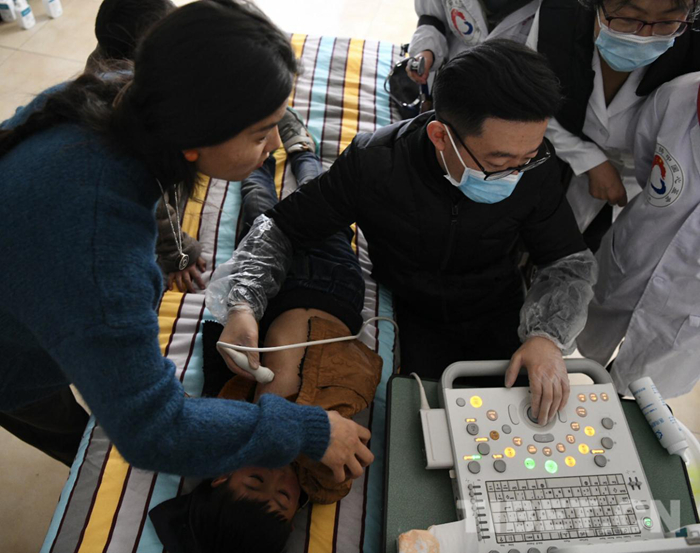 醫(yī)療隊和志愿者們不顧舟車勞頓和高原反應(yīng)的不適,認(rèn)真地對每一位前來篩查的小朋友進行詳細(xì)的詢問和認(rèn)真的檢查。對于有疑似癥狀的患者則現(xiàn)場利用從北京帶來的先進設(shè)備進行彩超診斷,并耐心和每一位患者家屬進行交流和講解,在每個工作細(xì)節(jié)上精益求精。