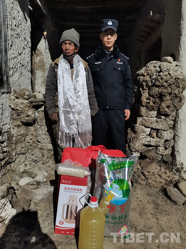中國西藏網(wǎng)訊 “人生最美夕陽紅,世間最美老年花?!弊鹄稀⒕蠢?、愛老、助老是中華民族引以為傲的傳統(tǒng)美德。在元旦和2021年中國人民警察節(jié)來臨之際,西藏自治區(qū)拉孜縣公安局查務(wù)公安一級檢查站民警達(dá)瓦次仁抽出休息時(shí)間,自掏腰包看望慰問彭措林鄉(xiāng)那嘎村、芒普鄉(xiāng)普村、熱薩鄉(xiāng)卡西村、曲瑪鄉(xiāng)曲瑪村等4名孤寡老人。