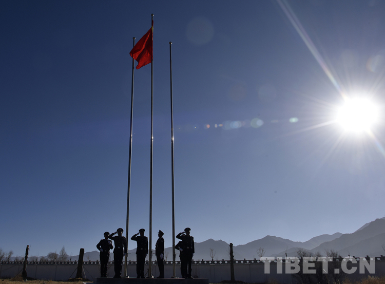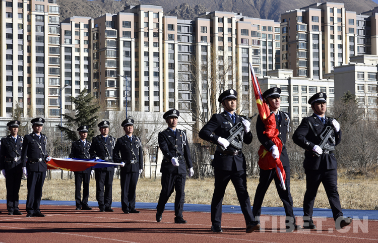 中國西藏網(wǎng)訊 伴隨著洪亮的國歌聲,一面五星紅旗冉冉升起。1月1日上午,西藏自治區(qū)拉薩市公安局城關公安分局納金派出所及轄區(qū)內百余名群眾著盛裝齊聚一堂,舉行升國旗、慶元旦、喜迎“中國人民警察節(jié)”活動。