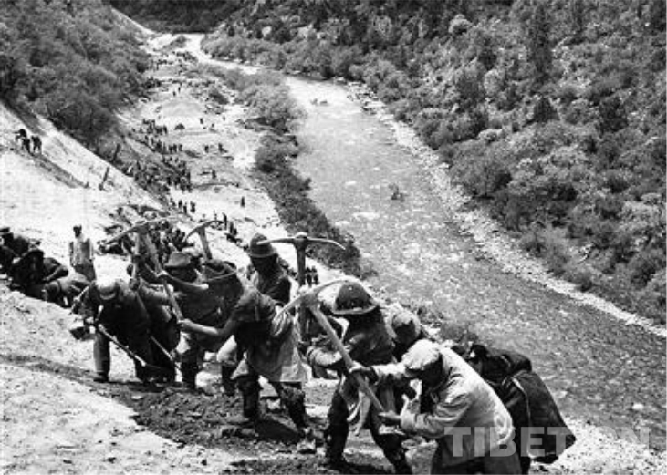 圖為筑路部隊(duì)在波密一帶修筑康(川)藏公路