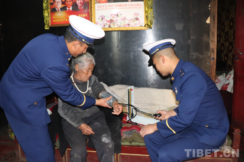 圖為阿玉龍指戰(zhàn)員(右)為卓給阿媽測量血壓