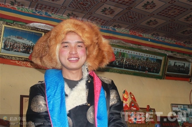圖為身著藏族服飾的王卿龍在西藏過年