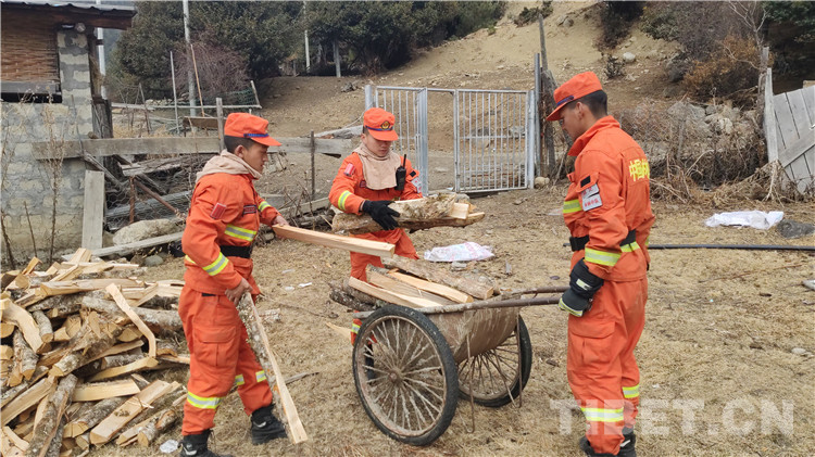 圖為指戰(zhàn)員們幫助駐地居民整理木柴