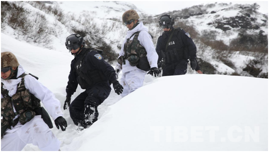 在南伊珞巴民族鄉(xiāng),巡邊隊伍正冒著大雪,穿過茂密的原始森林,攀爬險峻的山石,沿著邊境線巡邏。