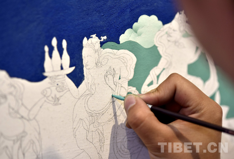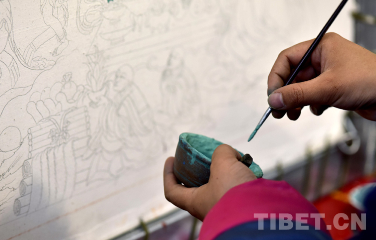 白描、勾線、上色……每一個步驟重復得熟稔于心,尼瑪倉拉進入了畫院高級班學習。去年,她更是得到畫院老師們的認可,加入到功德林寺壁畫修復的行列。