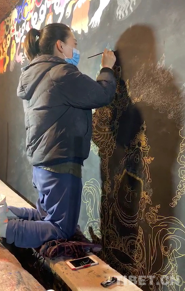 圖為尼瑪倉拉在寺廟修復壁畫 圖片由受訪者提供