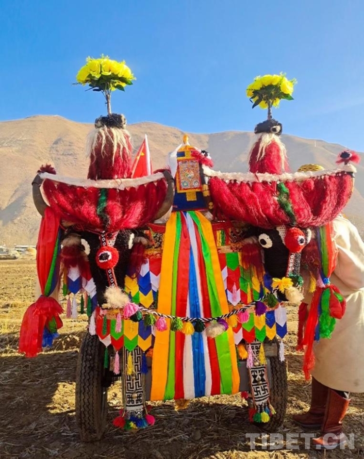 圖為拉薩市達孜區(qū)白納村春耕儀式上裝扮一新的“鐵?!?攝影:卓嘎
