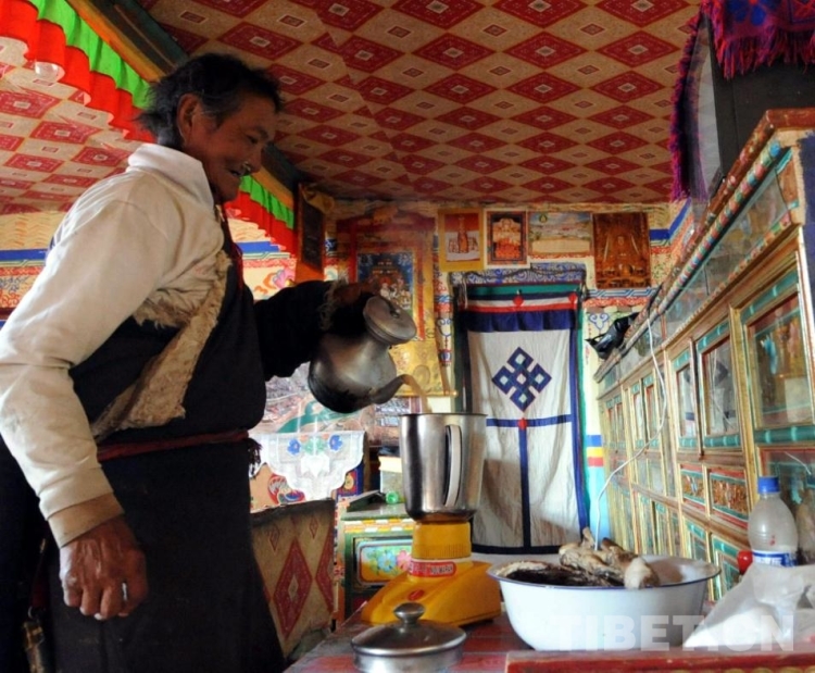 在藏北草原上,走進(jìn)任何一頂帳篷或是一間房屋,總會見到兩樣不可或缺的東西——一包包磚茶和一袋袋糧食。