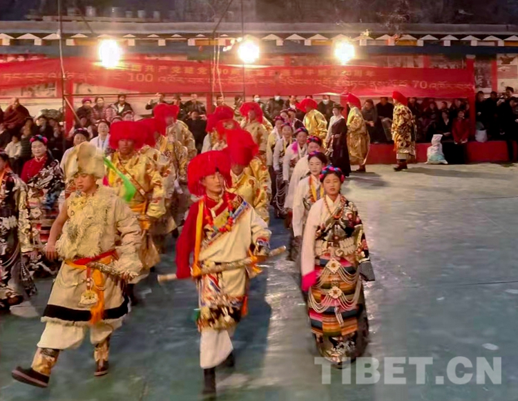 安麥西村民集體歌唱的《出征》,讓人們回想起當年安麥西15勇士為保衛(wèi)幸福家園,保護金珠瑪米,英勇同叛軍進行殊死斗爭前視死如歸、團結(jié)一心的動人場景,將整場演出進一步推向了高潮。演出活動在這歌舞聲中接近尾聲,在場的演員群眾手捧哈達高呼:“永遠感黨恩、聽黨話、跟黨走,團結(jié)奮斗,創(chuàng)造我們更加幸福美好的新生活!”(中國西藏網(wǎng) 通訊員/蔡生萬)