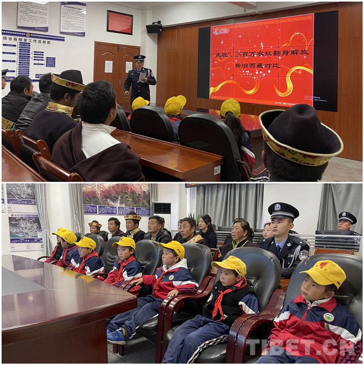 儀式結(jié)束后,派出所邀請學(xué)校師生及群眾代表參觀警營,民警貢秋羅布還為學(xué)生們上了一堂生動(dòng)的西藏百萬農(nóng)奴解放歷史課,講解了西藏百萬農(nóng)奴在中國共產(chǎn)黨的帶領(lǐng)下,打破政教合一的封建農(nóng)奴制的枷鎖;講述了短短幾十年跨越上千年的社會(huì)主義新西藏的發(fā)展奇跡。課后,小學(xué)生多吉說,“從這堂課里,知道以前的小孩多么可憐,現(xiàn)在我們有了警察叔叔和老師們的幫助,一定要好好學(xué)習(xí),長大以后報(bào)效祖國?!?/p>