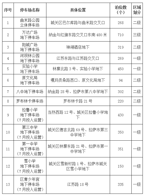 這13個(gè)指定停車場(chǎng)為: