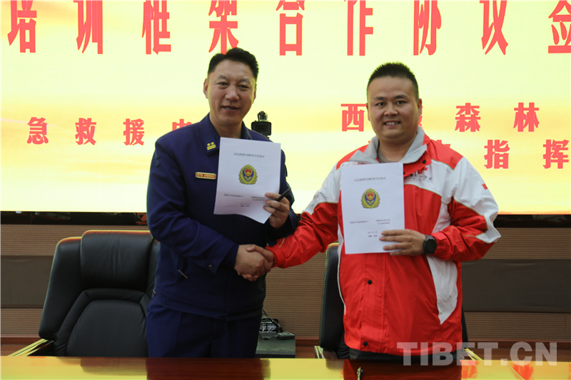 中國西藏網(wǎng)訊 4月1日下午,西藏自治區(qū)森林消防總隊(duì)與西藏玖玖玖緊急救援中心簽訂培訓(xùn)框架合作協(xié)議。