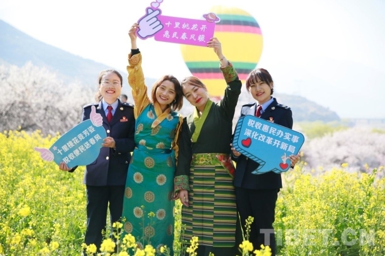 圖為國家稅務總局林芝市稅務局在林芝市第十九屆桃花旅游文化節(jié)開展宣傳
