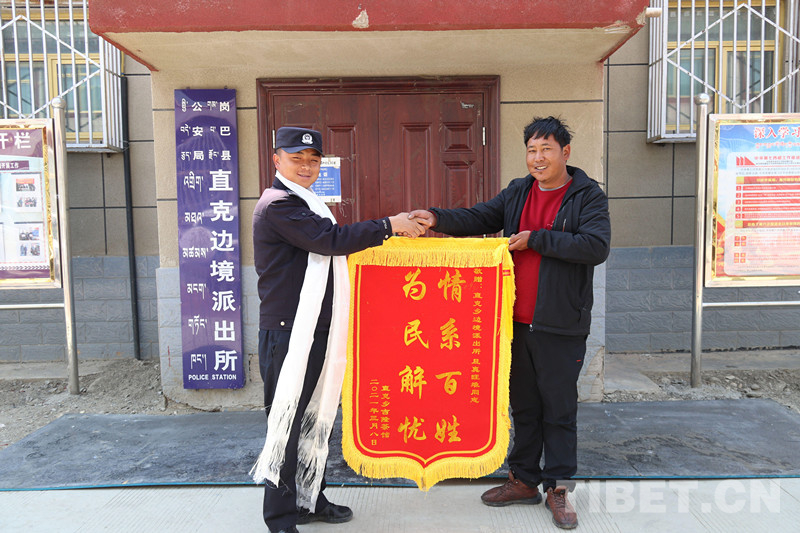 “真是太感謝你們了,如果沒有你們的及時(shí)幫助,我不知道我這茶館還在不在了”,4月13日,西藏日喀則市崗巴縣直克鄉(xiāng)吉隆茶館的邊巴將一面印有“情系百姓、為民解憂”錦旗送到西藏日喀則邊境管理支隊(duì)直克邊境派出所,以表達(dá)對(duì)派出所民警旦真旺堆同志英勇救火的感激之情和崇高敬意。