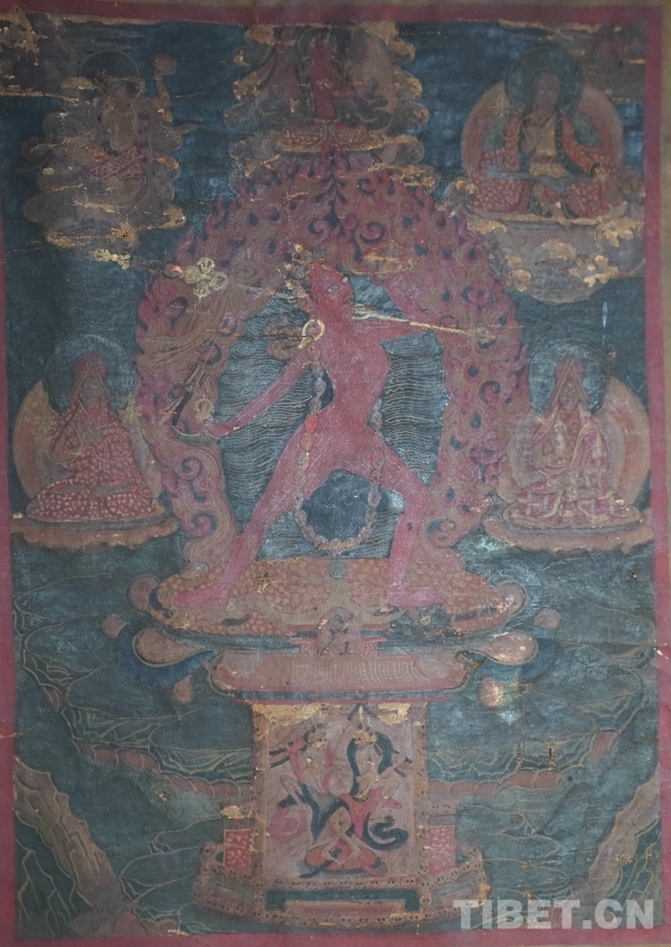 江白家中上千件藏品中不僅有展現民族傳統(tǒng)文化結晶的唐卡、經書、佛像、傳統(tǒng)服飾藏醫(yī)器材、兵器,還有反映先輩們當時物質生活水平和生產方式的日常生活用具。