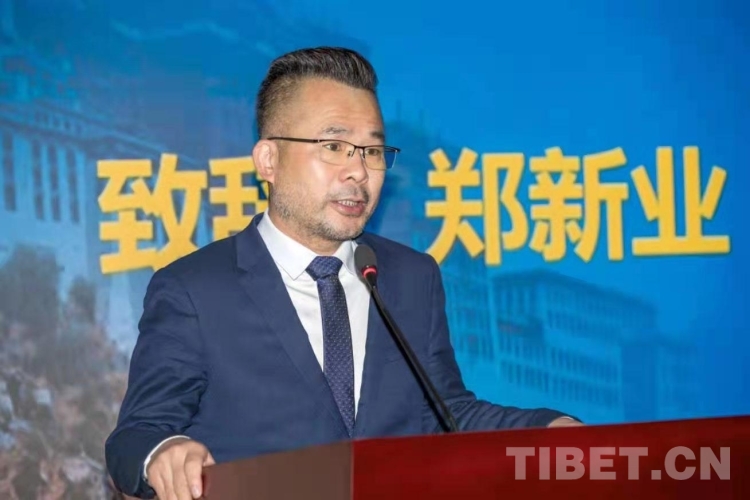 圖為西藏民族大學(xué)黨委書(shū)記歐珠致歡迎辭