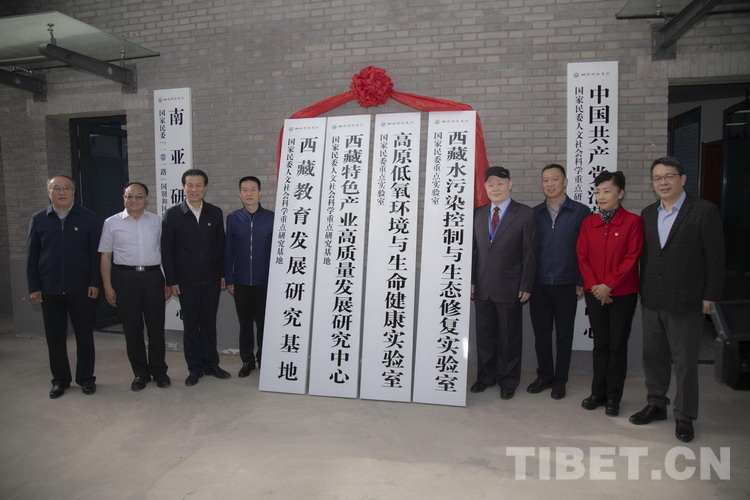 研討會開幕式之前,與會領(lǐng)導為西藏教育發(fā)展研究基地、西藏特色產(chǎn)業(yè)高質(zhì)量發(fā)展研究中心、高原低氧環(huán)境與生命健康實驗室、西藏水污染控制與生態(tài)修復(fù)實驗室同時掛牌揭幕。大會主旨發(fā)言之后,西藏民族大學黨委常委、副校長史本林、西藏駐格爾木辦事處(藏青工業(yè)園區(qū))黨委書記邱川共同簽訂雙方合作框架協(xié)議,旨在加強科研交流合作,共同為西藏社會高質(zhì)量發(fā)展做出貢獻。