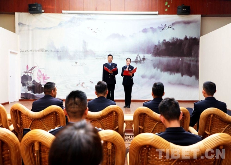 舉辦警營(yíng)朗讀活動(dòng)。當(dāng)民警達(dá)瓦卓瑪朗讀完《我把黨來(lái)比母親》,全場(chǎng)民警自發(fā)唱起了《唱支山歌給黨聽(tīng)》?!俺礁杞o黨聽(tīng),我把黨來(lái)比母親……”每一句歌詞都唱出了西藏各族兒女對(duì)黨最真摯的感情。