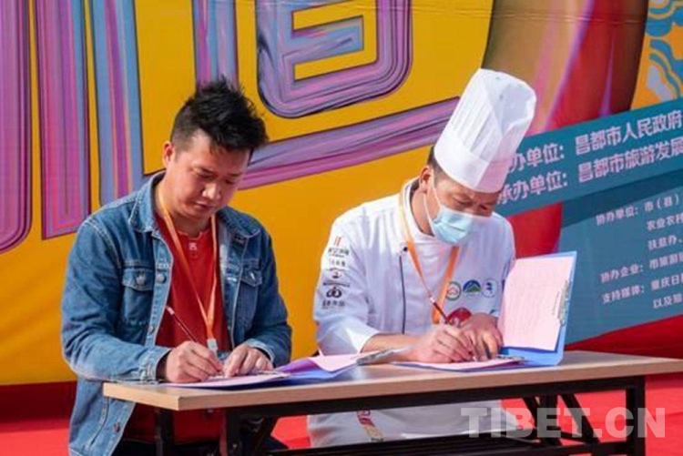 此外,活動現(xiàn)場還進(jìn)行了非物質(zhì)文化遺產(chǎn)體驗(yàn)活動和產(chǎn)品展銷活動,共有32個企業(yè)參加。據(jù)悉,截止活動結(jié)束,現(xiàn)場累計交易額5萬余元。重慶文旅館同參賽人員進(jìn)行現(xiàn)場簽約,這對昌都餐飲業(yè)的推廣和發(fā)展具有重要的意義。(中國西藏網(wǎng) 記者/次旦拉姆 圖片由卓卓康巴美食大賽組委會提供)