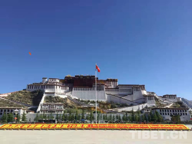 出席當(dāng)天儀式的干部職工代表,解放軍和武警部隊(duì)官兵代表,學(xué)校師生、離退休干部職工、僧尼和群眾代表1000余人。10時整,在軍樂隊(duì)伴奏下,西藏黨政軍負(fù)責(zé)人同西藏各界代表一起高唱中華人民共和國國歌,國歌聲在布達(dá)拉宮廣場回蕩。