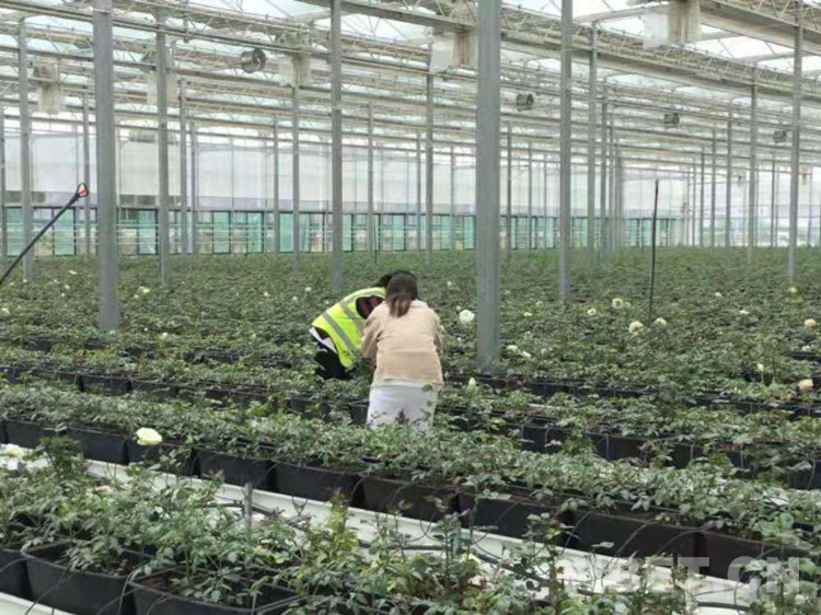 圖為在花棚就業(yè)的大學(xué)生正在修剪玫瑰 攝影:拉姆